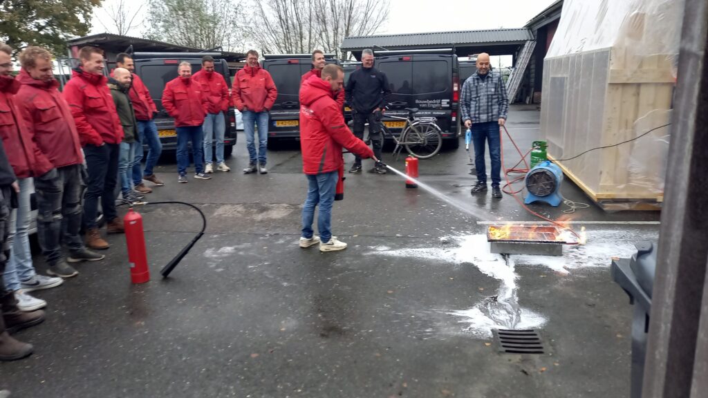 Donderdag stond de gehele dag in het teken van veiligheid op de werkplaats. Voor alle 15 BHV-ers was het weer een herhalingsdag. Elke twee jaar wordt zo de kennis en kunde weer opgefrist. In de ochtend afwisselend theorie en praktijk in onze eigen Boomhut.