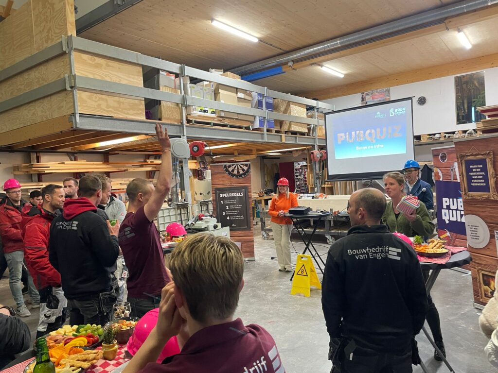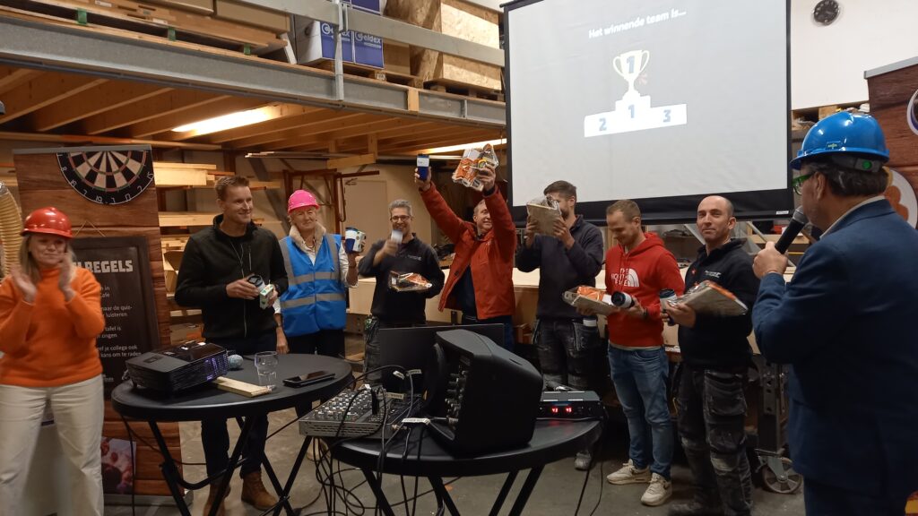 Vervolgens stond er voor alle collega’s een bijzondere toolbox op het programma een heuse PubQuiz georganiseerd vanuit Volandis. Op een interactieve en uitdagende manier aan de slag met o.a. thema’s als veiligheid en bouwspraak. Alle collega’s verdeeld in 6 groepen en met het nodige overleg en onderlingen discussie hebben alle groepen gestreden voor de prijzen.