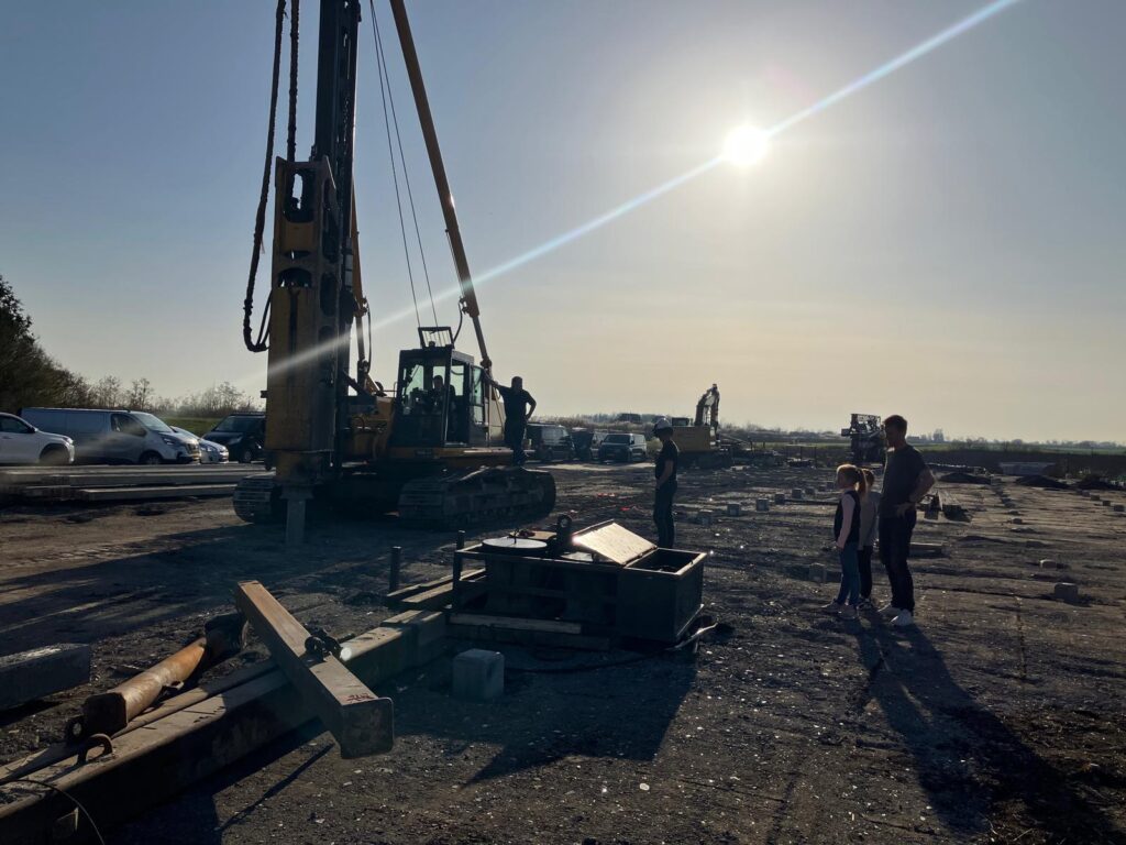 Een paar laatste flinke klappen en daarmee ging gisteren de laatste heipaal alweer de grond in! In totaal ging het om zo’n 320 (!) palen waarmee een stevige basis voor de rest van ons nieuwe pand geslagen is. Reden genoeg voor een klein feestje vorige week donderdagmiddag 5 maart!