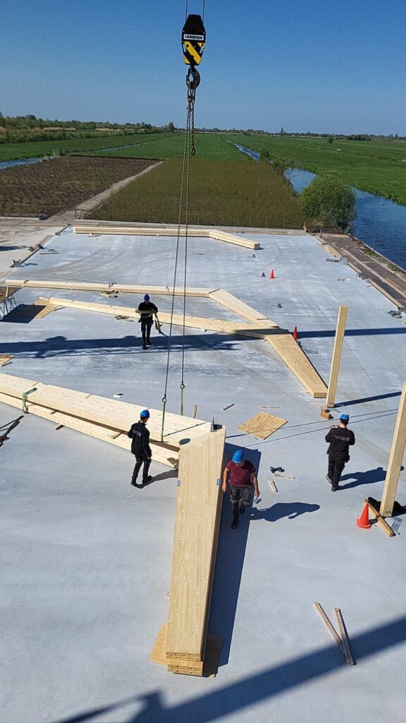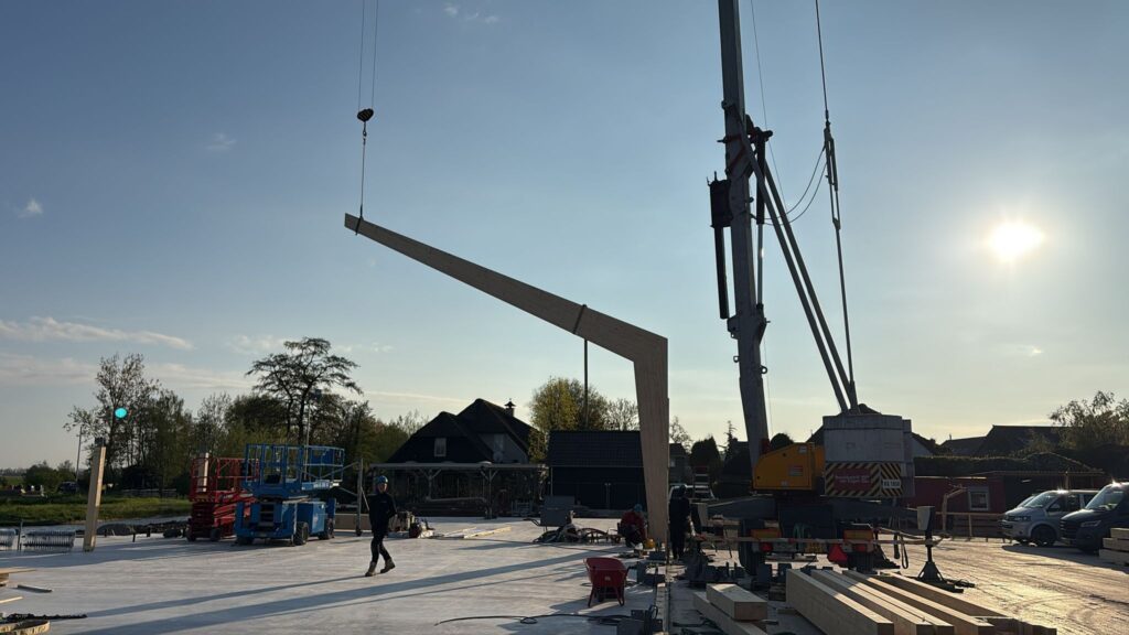 Wat een bijzondere week: de spanten gaan omhoog!! Met dit prachtige weer erbij geeft wel hele mooie foto’s. Stralend weer en en ook een stralend team op Portengen 51a, dit is toch prachtig werk. Jan-Willem is zelf ook iedere dag op de bouw in actie, een weekje geen kantoor voor hem. Hij is helemaal in zijn element met de nieuwe contouren nu zo goed zichtbaar!