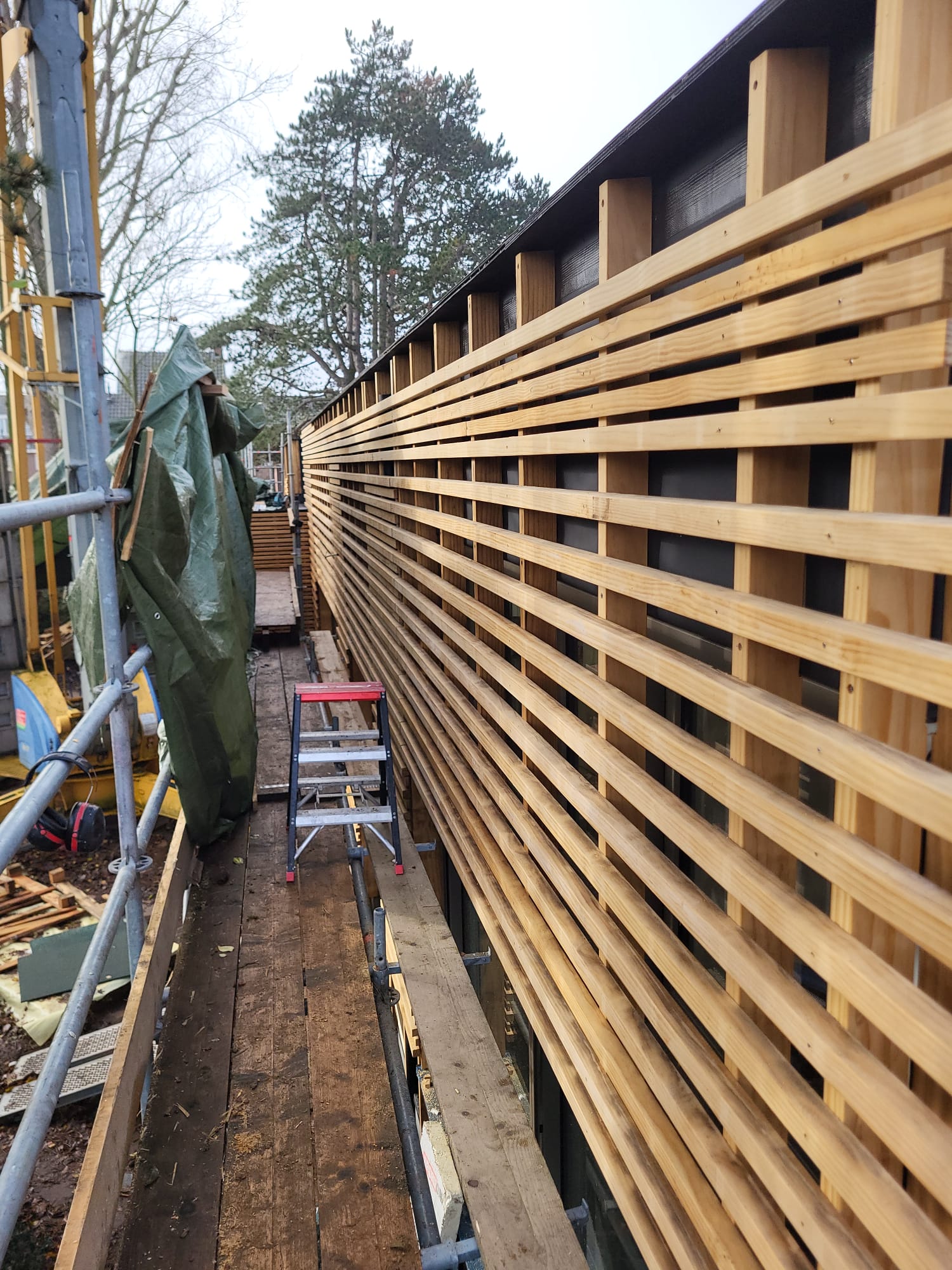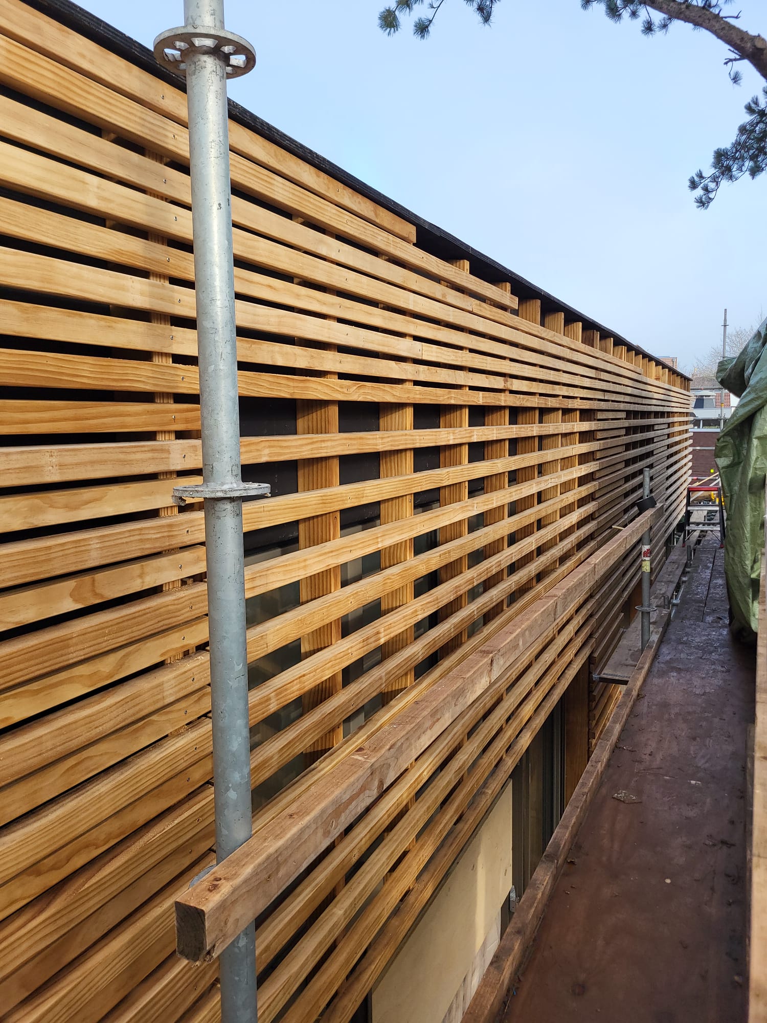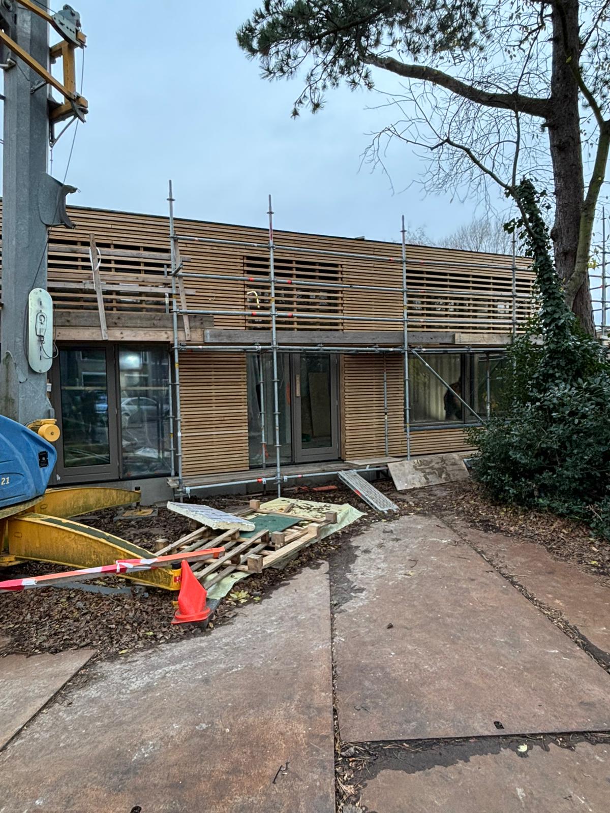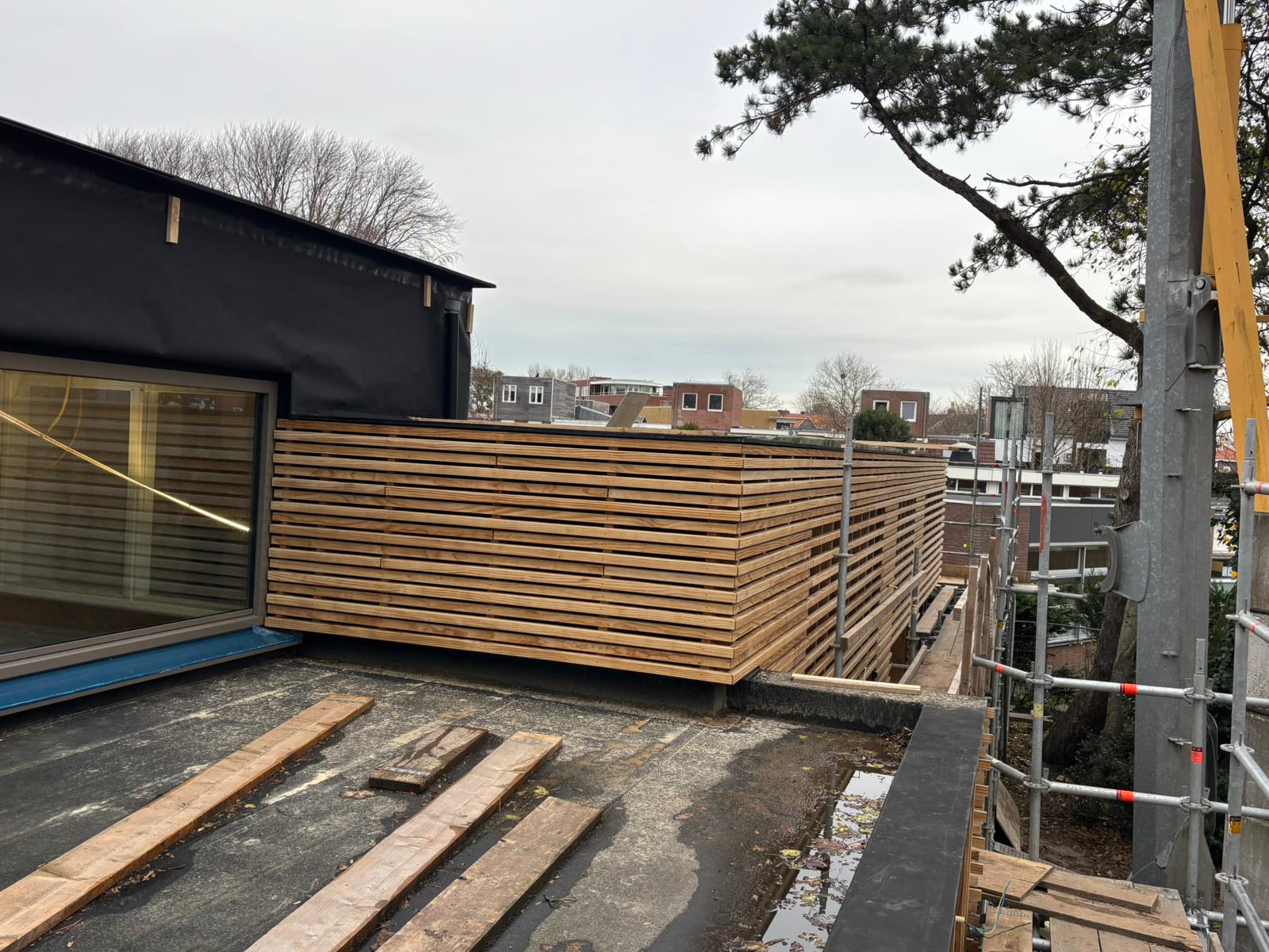 Het casco wordt opgebouwd uit een houten damp-open constructie en wordt afgewerkt met een Accoya houten gevelbekleding en met Accoya houten kozijnen. Het platte dak wordt voorzien van een groen sedumdak.